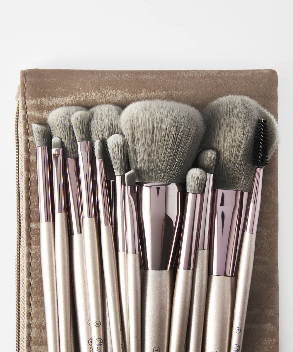 The Lavish Elegance 15 Piece Brush Set is sure to add a bit of luxury to your makeup routine. Containing a mixture of face and eye brushes, you can seamlessly create a range of full-face makeup looks and store your brushes together in the inclusive pewter-coloured chiffon bag. A must have set for the sophisticated makeup lover.