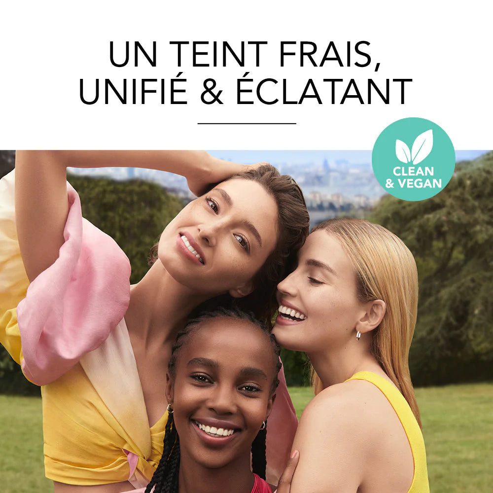 Vegan and 100% Clean moisturizing foundation that camouflages imperfections and signs of fatigue, for a hydrated complexion...