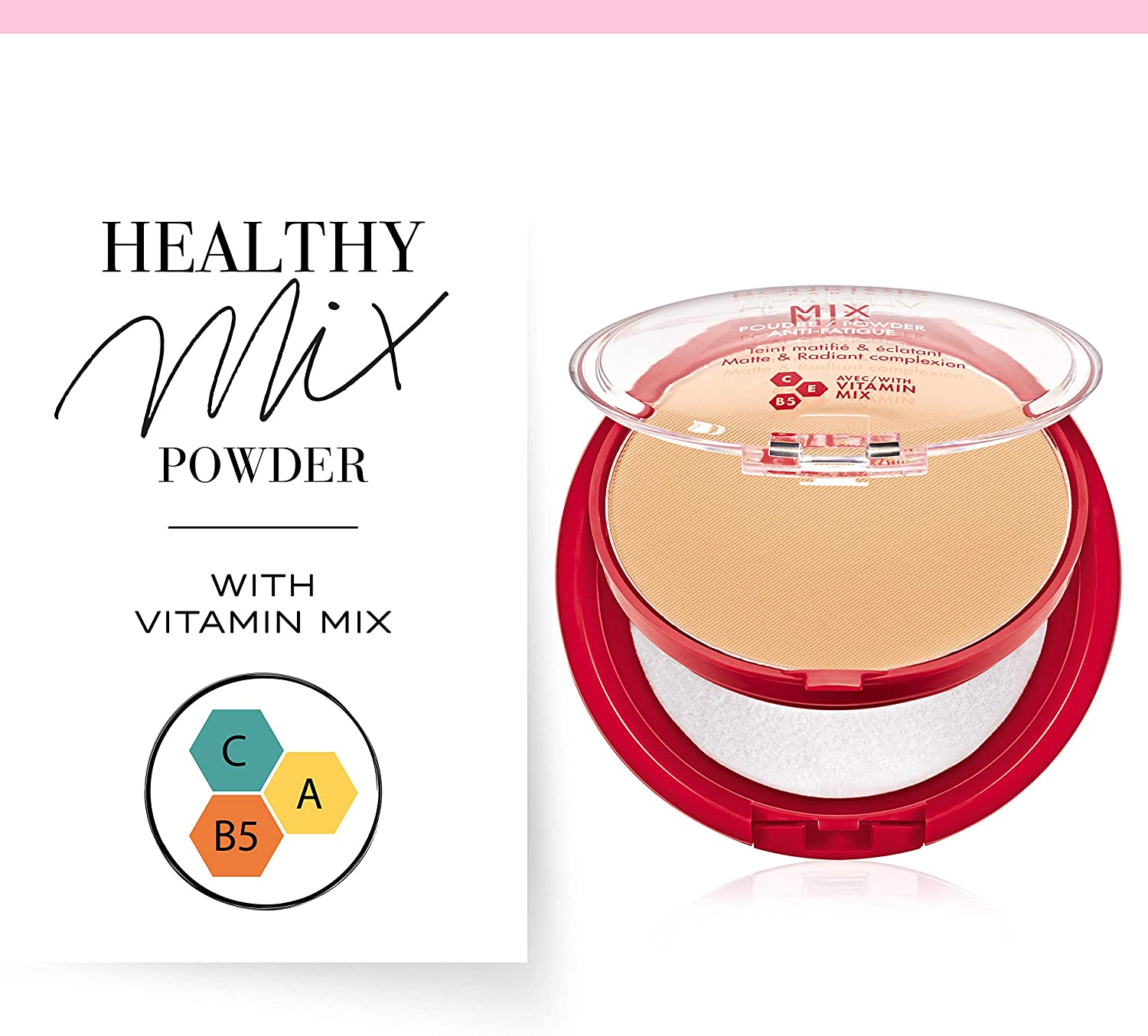 Healthy Mix Powder from Bourjois provides a perfect finish to you healthy-looking and natural make-up. This anti-fatigue powder reveals the radiance of your skin and simultaneously makes it even and shine free. The innovative complex of vitamins C, E and B5 has an anti-fatigue effect and removes the dullness from your complexion. Healthy Mix Powder's soft, non-drying formula blends easily into the skin and gives you the comfort you expect from a perfect powder. Also, it has the most beautiful, fruity floral scent!