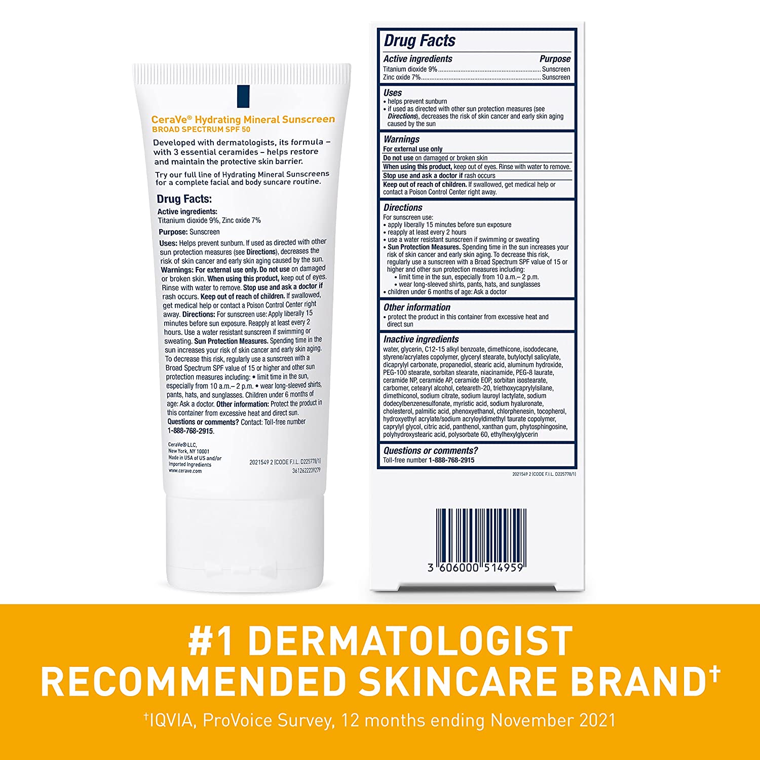 • [ MINERAL SUNSCREEN APPLICATION ] Physical sunscreens can often leave a white cast when applied in thick layers. For best results, apply CeraVe Hydrating Mineral Sunscreen evenly to the entire face and neck in thin layers and thoroughly massage into skin. Suitable for use under foundation and face makeup.