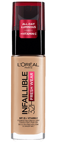 Our Infallible 32H Freshwear Foundation in 140 Golden Beige, with vitamin C and SPF25. A transfer-proof and water-proof foundation with full coverage so you get more from your makeup. The innovative oxygen technology gives a lightweight feel whilst the ultra - stretchable formula ensures full coverage application, so a little goes a long way. Life doesn't compromise, so now your makeup doesn't either.