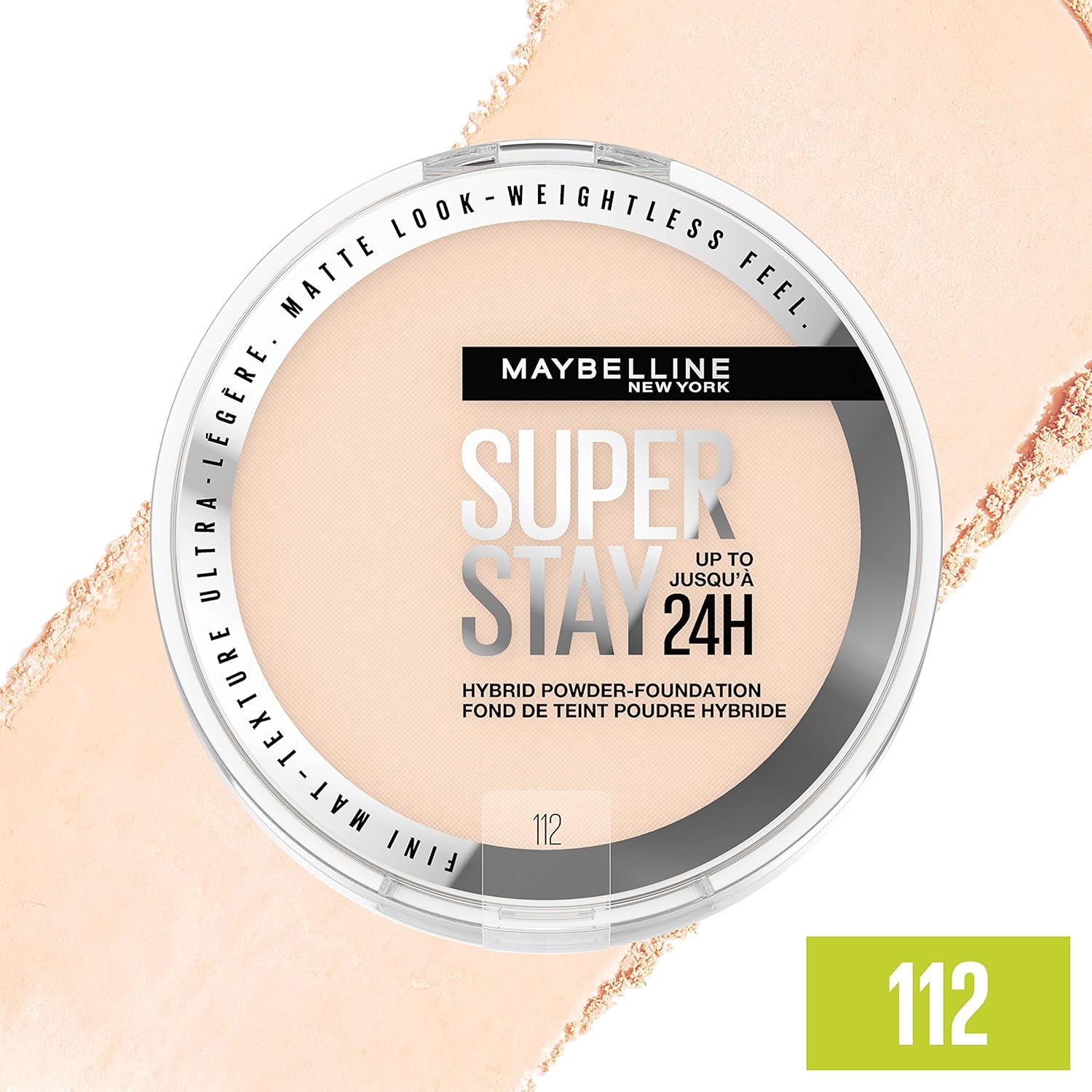 Maybelline Super Stay Up to 24HR Hybrid Powder-Foundation, Medium-to-Full Coverage Makeup, Matte Finish, 112,