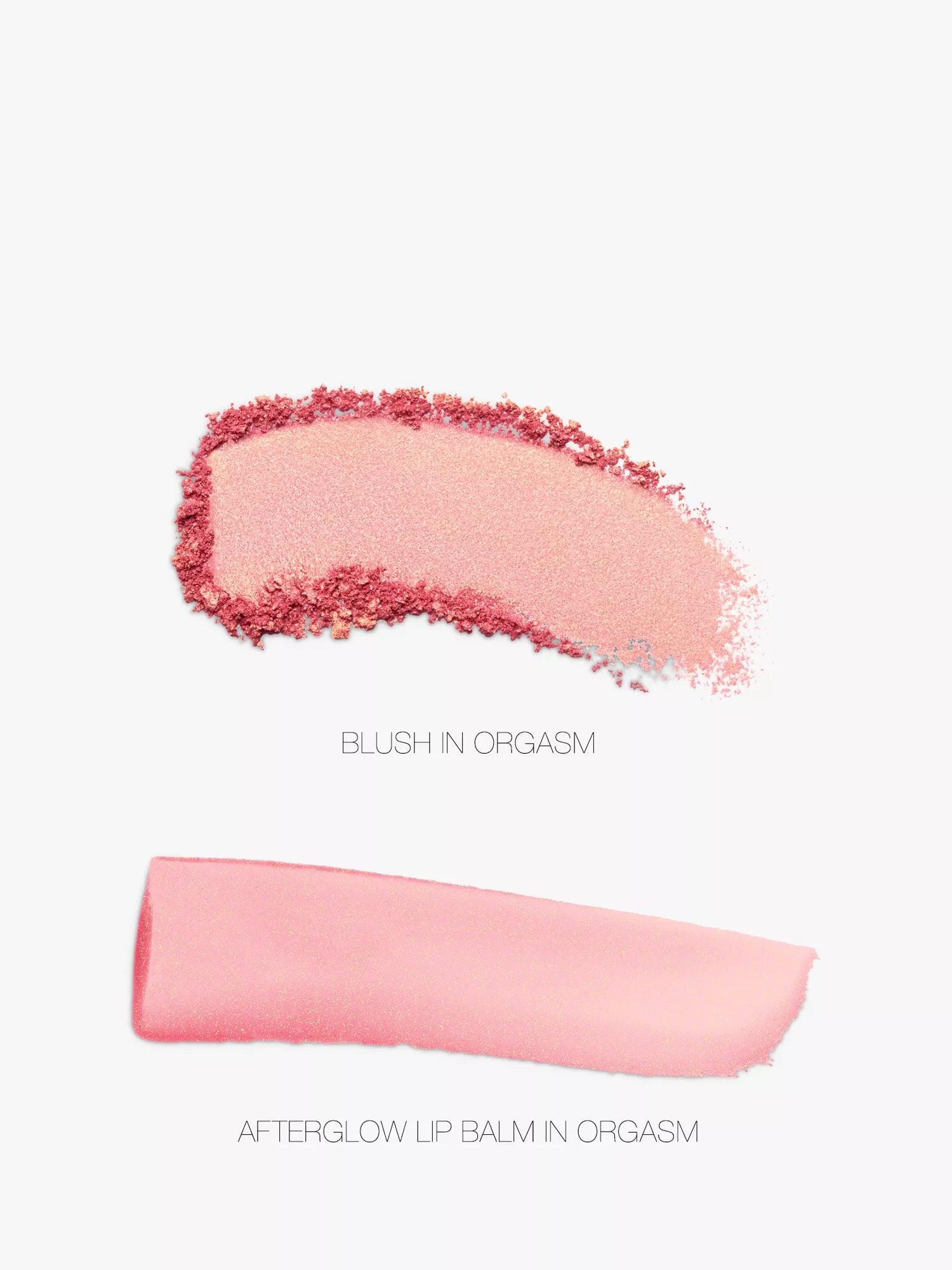 Fuel your craving for Orgasm with a limited-edition set featuring all you need for a natural-looking glow. The Full-size Afterglow Lip Balm delivers a hint of peachy-pink tint with a surge of hydration, while Mini Blush gives cheeks a natural-looking rush of colour. Complete the thrill with a Mini Blush Brush.