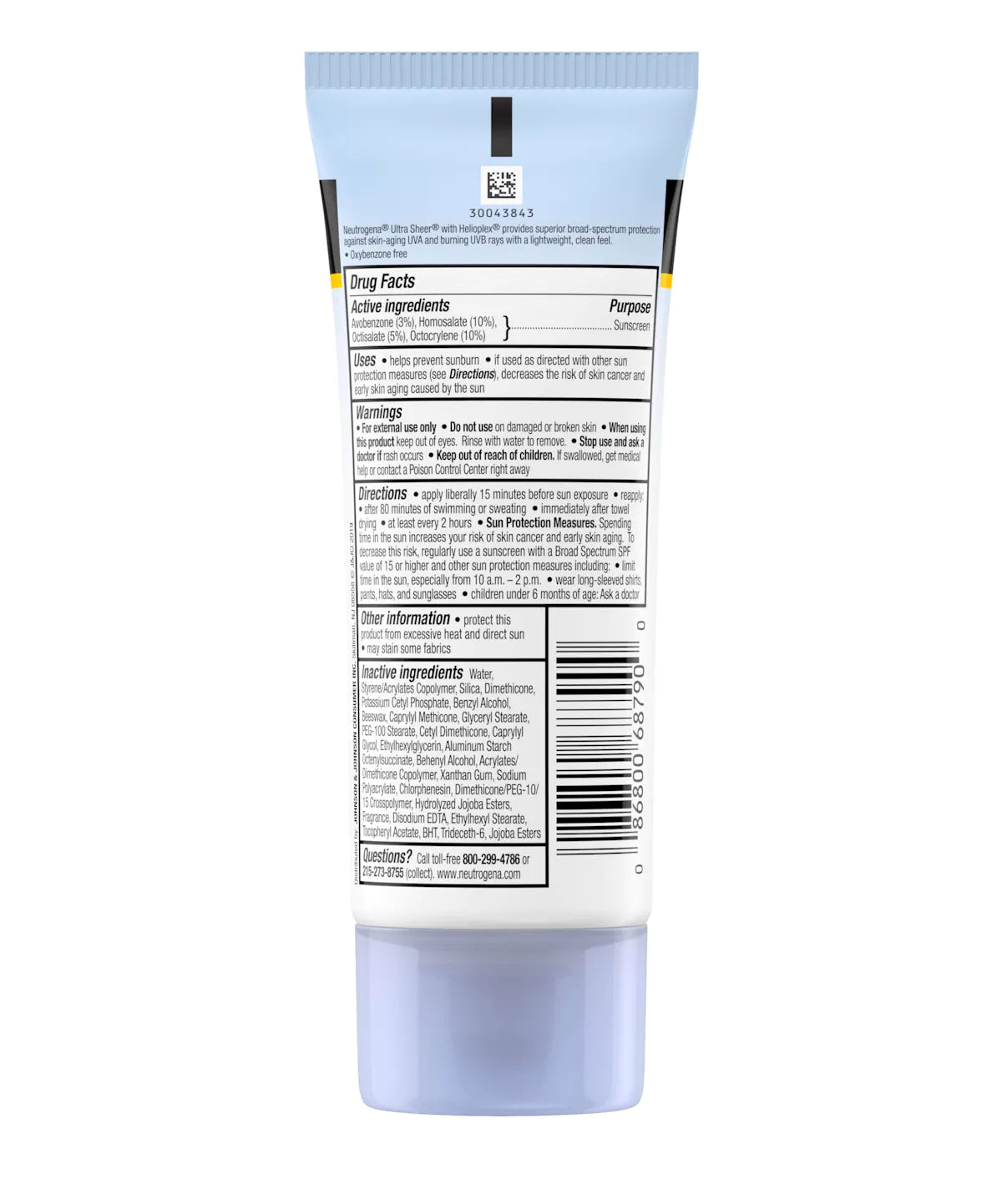 Our best-selling Ultra Sheer® line provides powerful sun protection you will love to wear. It goes on easily and absorbs quickly for an invisible, light-weight feel on your skin. Formulated with Helioplex® Technology, it offers superior broad spectrum protection from aging UVA rays and burning UVB rays.