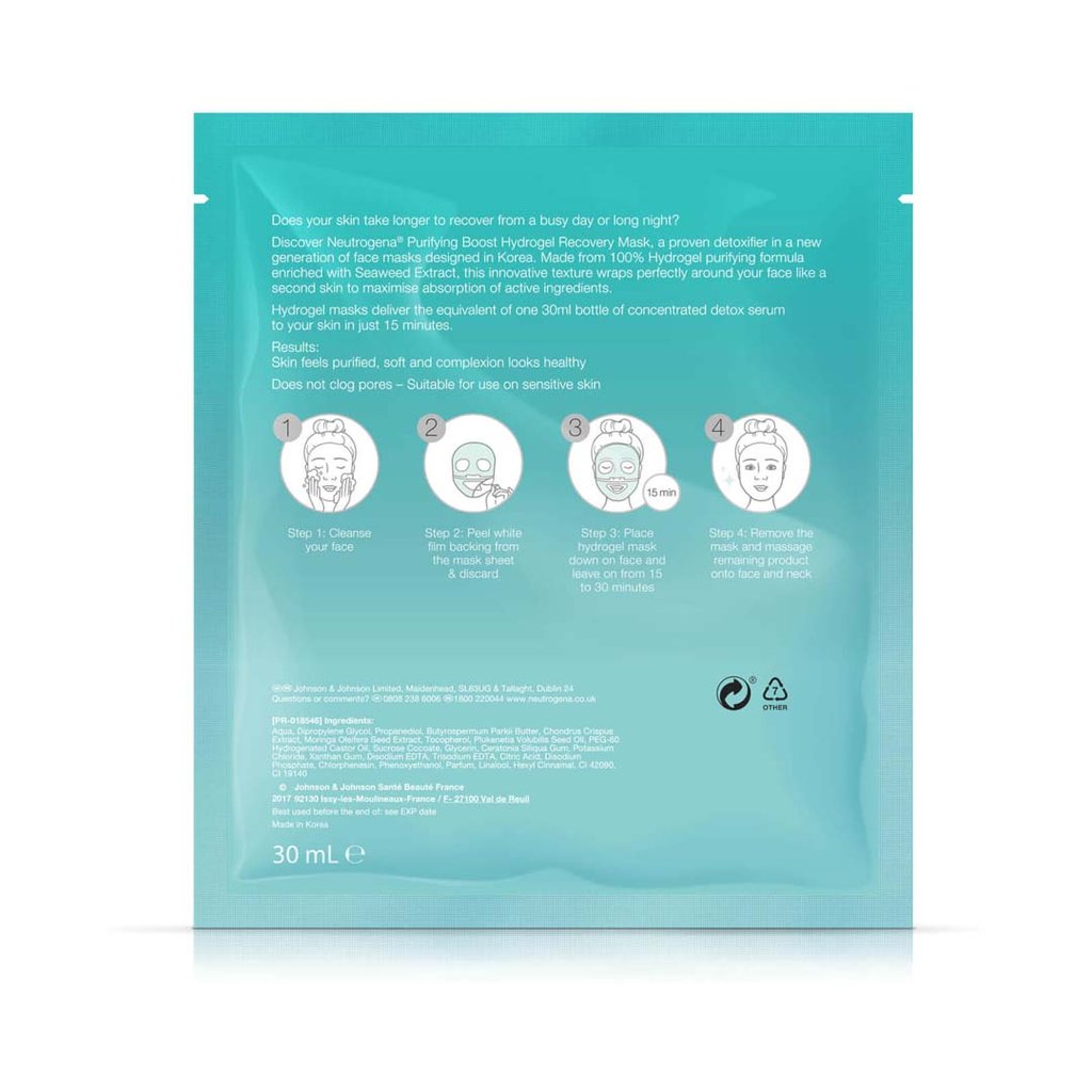 Discover NEUTROGENA® Purifying Boost Hydrogel Recovery Mask, a proven detoxifier in a new generation of face masks designed in Korea. Made from 100% Hydrogel purifying formula enriched with Seaweed Extract, this innovative texture wraps perfectly around your face like a second skin to maximise absorption of active ingredients.