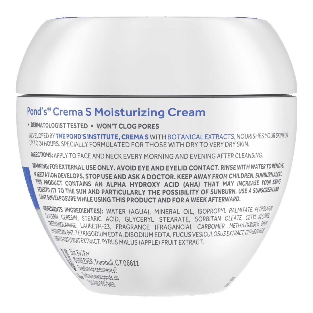 Pond’s Crema S Face Moisturizer Cream, Facial Moisturizing for Dry to Very Dry Skin 10.1 oz