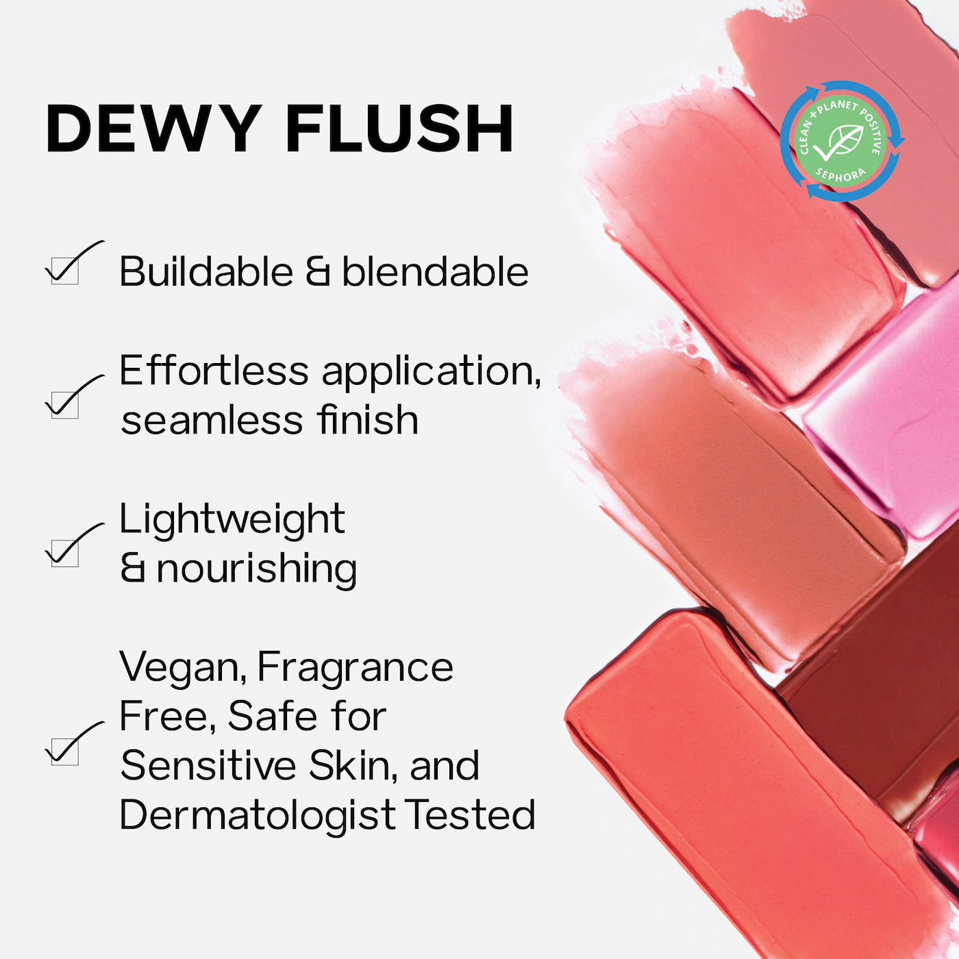 What Else You Need to Know: Dew Blush is packed with skin-loving ingredients like Plant-Derived Glycerin and Licorice Root Extract for smooth, dewy and nourished skin. Say goodbye to harsh lines, our creamy formula blends seamlessly for a flush of natural color that's never patchy or streaky. The chunky doe-foot makes targeted application easy and allows you to build shades to your desired level. Dermatologist tested and safe for sensitive skin.