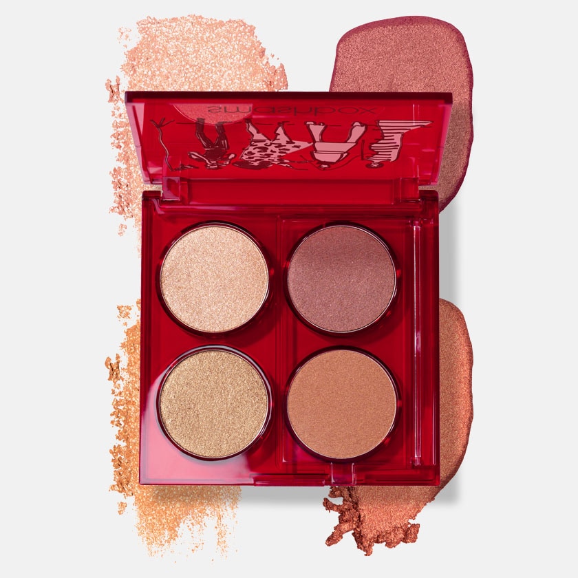Play up your features with this versatile cheek & eye makeup palette. It has 2 luminous putty blushes & 2 radiant powder highlighters that can be worn alone or layered to create a custom glow. This cheek palette is curated with a range of holiday-inspired champagne, mauve, bronze & coral shades that are velvety, blendable & go on smoothly without emphasizing skin texture.