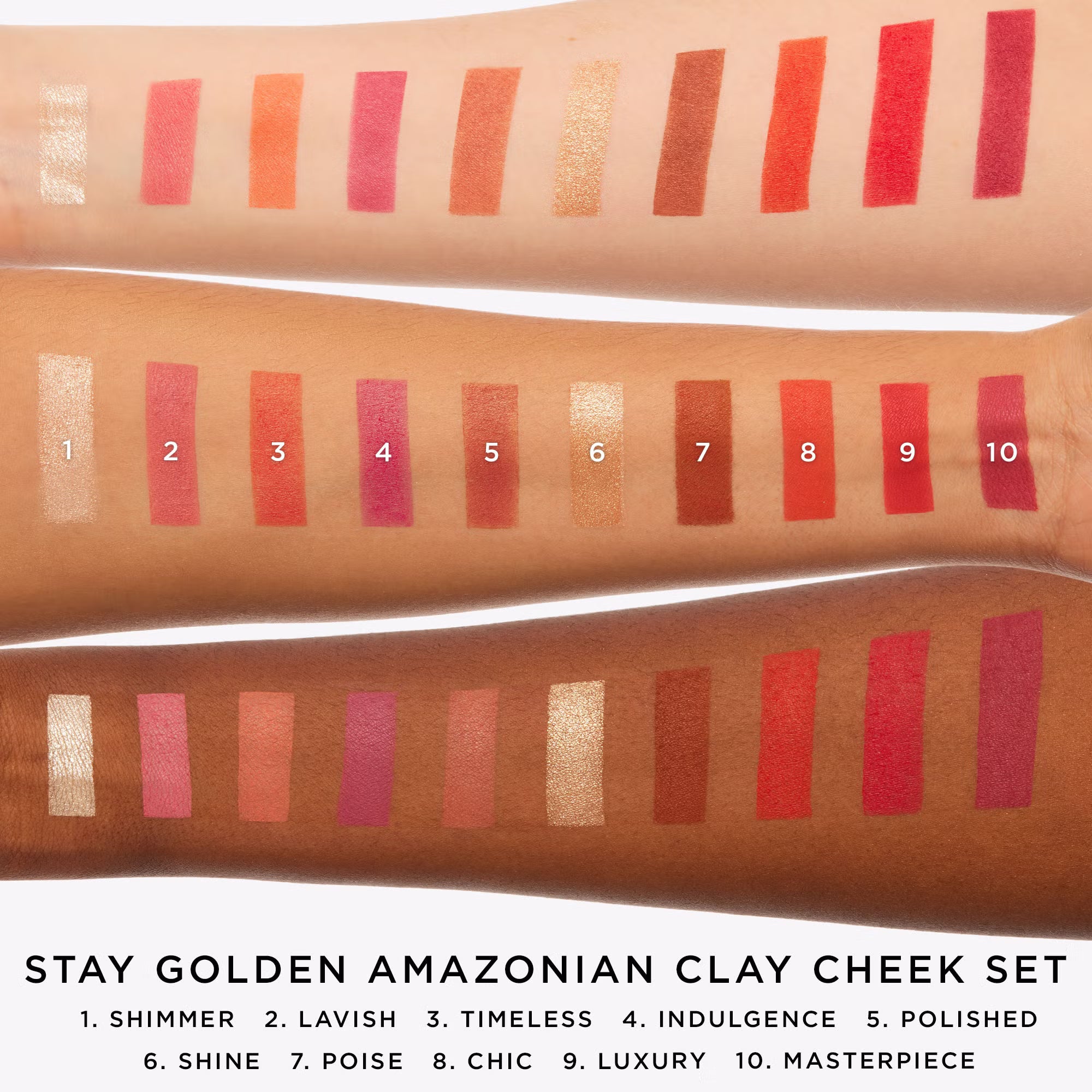 The Stay Golden Amazonian Clay Cheek Set by Tarte is a must-have collection for achieving a flawless, glowing complexion. This set includes a luxurious blush and highlighter duo, formulated with Tarte's signature Amazonian Clay for long-lasting wear and a smooth, natural finish. Perfect for adding a warm, golden glow to your cheeks, this set is ideal for any occasion, from everyday wear to special events.